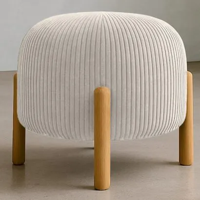 Pouf Rotondo Imbottito in Velluto a Coste con Gambe in Legno...