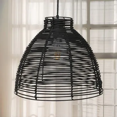 Lampada a soffitto in rattan nero - Lampada a sospensione in stile Boho Bali - Gian