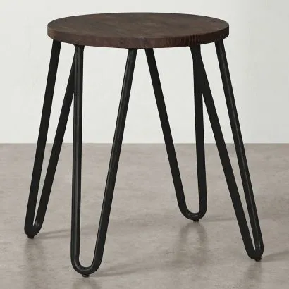 Sgabello da bar rotondo - Design industriale - Legno e acciaio - 43cm - Hairpin