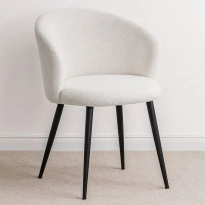 Sedia da pranzo - Rivestita in tessuto bouclé - Metallo Nero - Seda